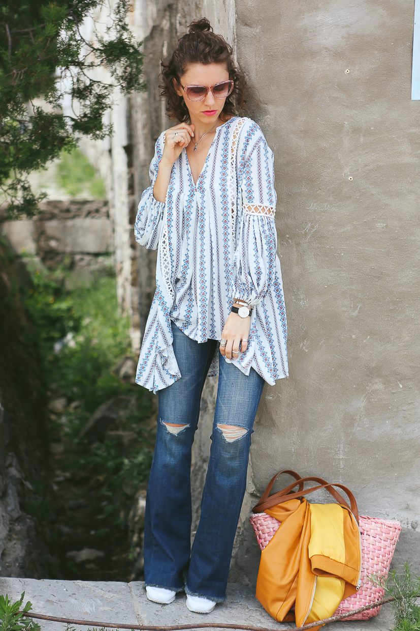 Hi dears! Today on my blog there is Kamenec Podolski city! It's so beautiful and historical place. This city has a fortress from 12 century that was regarded as the strongest in the Polish-Lithuanian Commonwealth. So enjoy this excited place and my boho look! I really like this blouse because it was made from natural material and this cotton lace. It is so cozy and looks very stylish. I also have another one pair of favorite jeans! It's really cool flared jeans that I had! And I am happy to tell about a global discount price for it! I hope you will enjoy it!